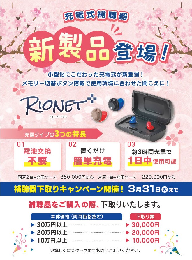 あなただけの補聴器「リオネットプラス」に【充電式補聴器】新登場。