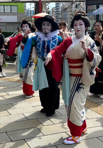 リオネットセンター長崎にも庭先まわりで『新橋町』が奉納踊りにお越し下さいました。