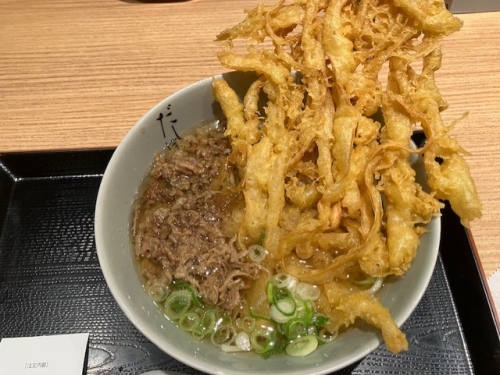 だしぼんずの 肉ごぼう天うどん お腹いっぱいになりました。