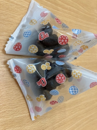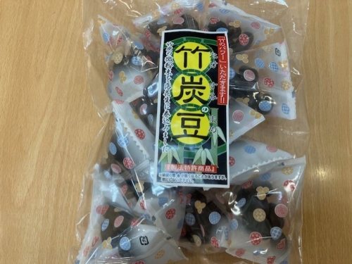 落花生に竹炭の粉末を巻き込んでいるようです。