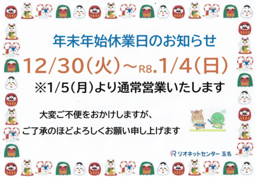 今年もリオネットセンター玉名店をご愛顧いただき、心より感謝いたします。