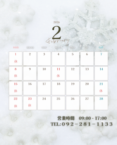 2月は祝日が2回あり、お休みが多くなっております。