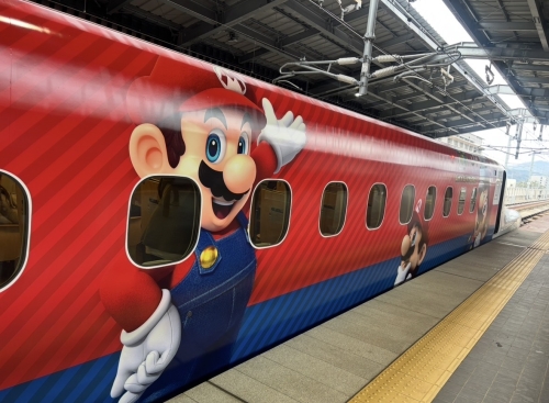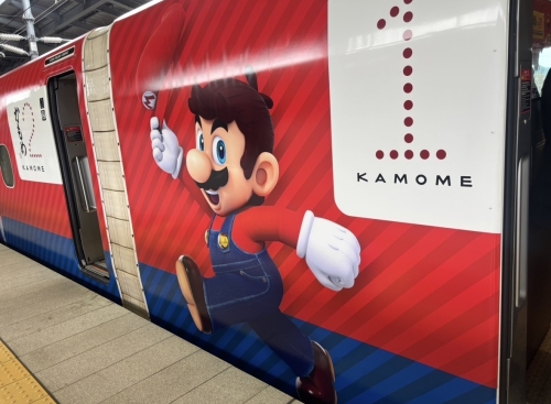 さて、武雄温泉駅から乗車した新幹線が、偶然にも『スーパーマリオトレイン』でした。
