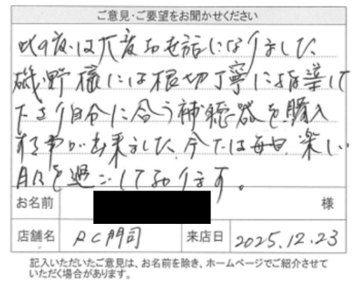 先日、お客様から嬉しいお声を頂きましたので、皆様にご紹介させていただきます。