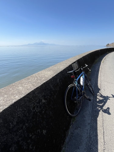 有明海と雲仙岳を見ながら走るこの道は、私のお気に入りルートです(^^)v