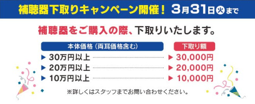 3/31まで「補聴器下取りキャンペーン」を実施しています!