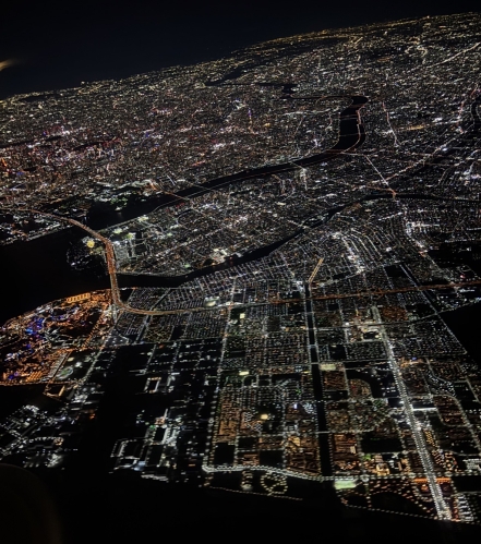 さて、写真は先日、飛行機から見た東京の夜景です。