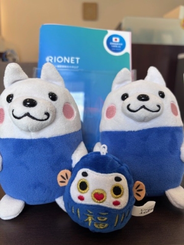 店舗入り口にピクシーくんとガチャガチャでゲットした「ふくだるま」を一緒に並べてみました