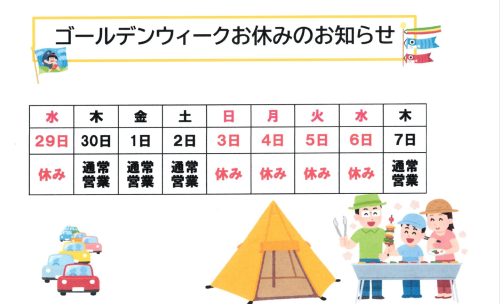 連休を楽しく過ごしていただくためにも、