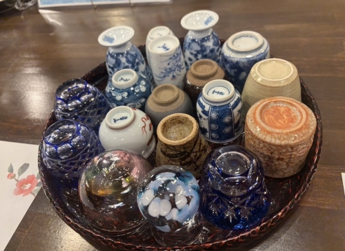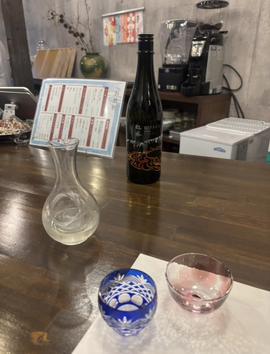 グラスをふたつ選ぶ事ができて、ひとつは食前酢用です。