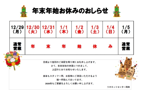 来年もリオネットセンター柳井店をどうぞよろしくお願いいたします