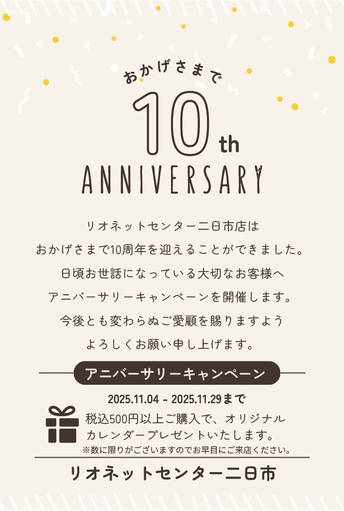 リオネットセンター二日市「10周年アニバーサリーキャンペーン」開催